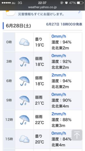 今日の11時発表時はいい感じに変わった天気予報も、今度は明日が丸一日雨に変わりました(u_u)そんなこんなでやはりキャンプは中止...我が家はグルキャン中止率が高いな((((;゚Д゚)))))))せっかく日曜日は好転したのにorz追記今月これでノーキャンプ決定ですね…